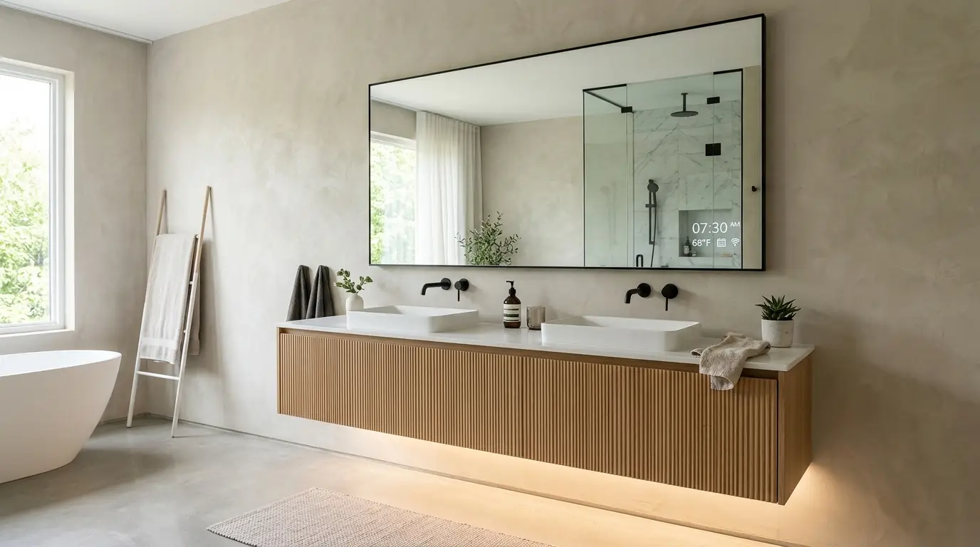 Modern mirrors in 2026 are basically giant tablets. They are fog-free, feature adjustable “makeup lighting” that can mimic office light or sunset, and can even display your calendar or the morning news in a corner while you shave or do your hair. It’s about reclaiming those “dead” minutes of your morning and making them productive—or at least entertaining.