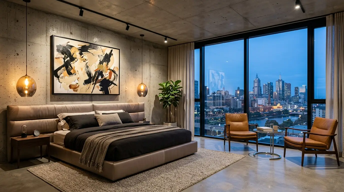 Master Your Lighting Layers: Urban Luxe is built on lighting. Do not rely on one bright overhead. Layer ambient light (cove lighting, backlit panels), task light (nightstand lamps), and accent light (track lighting on art). Use warm tones for the ultimate cozy feel.