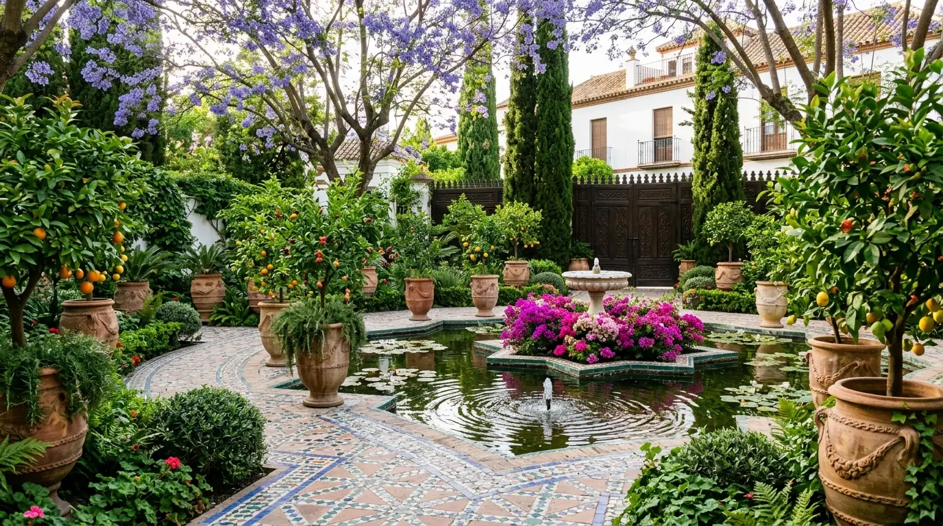 Creating a private retreat right outside your back door is the ultimate goal of modern homeownership, and backyard landscape design ideas are shifting toward a desire for profound serenity and rich, cultural aesthetics. The Andalusian courtyard aesthetic is exploding in popularity because it perfectly marries the lush, vibrant energy of Mediterranean planting with highly structured, geometric hardscaping. By integrating the warm glow of midday sunlight filtering through purple jacaranda canopies, colorful mosaic tile pathways, and the soothing sounds of star-shaped water features, this style transforms any mundane yard into an exotic, inviting sanctuary. In this extensive gallery, you will discover 23 distinct variations of this meticulous landscape design, giving you the ultimate blueprint to curate your own Mediterranean-inspired oasis.