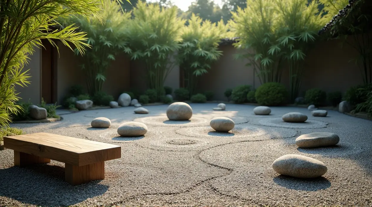 Crea espacios tranquilos con grava, piedras y un diseño minimalista centrado en la atención plena.