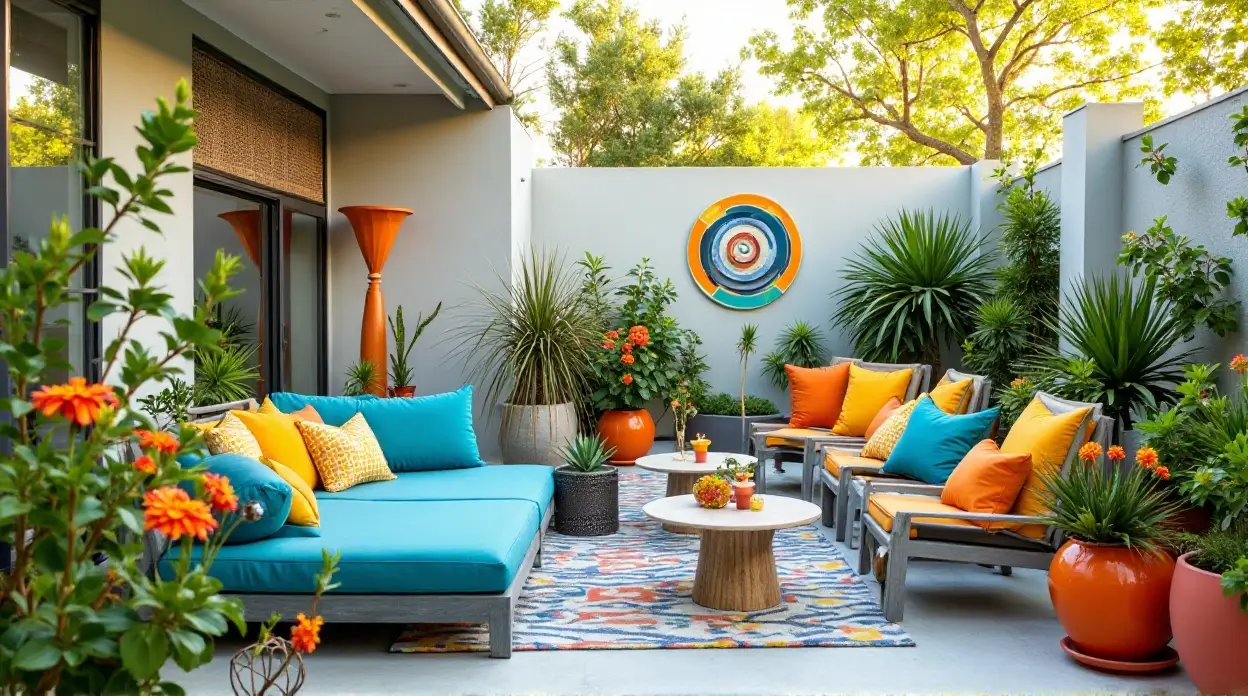 Incorpore colores vibrantes en muebles, decoración y selecciones de plantas para lograr un impacto impactante.