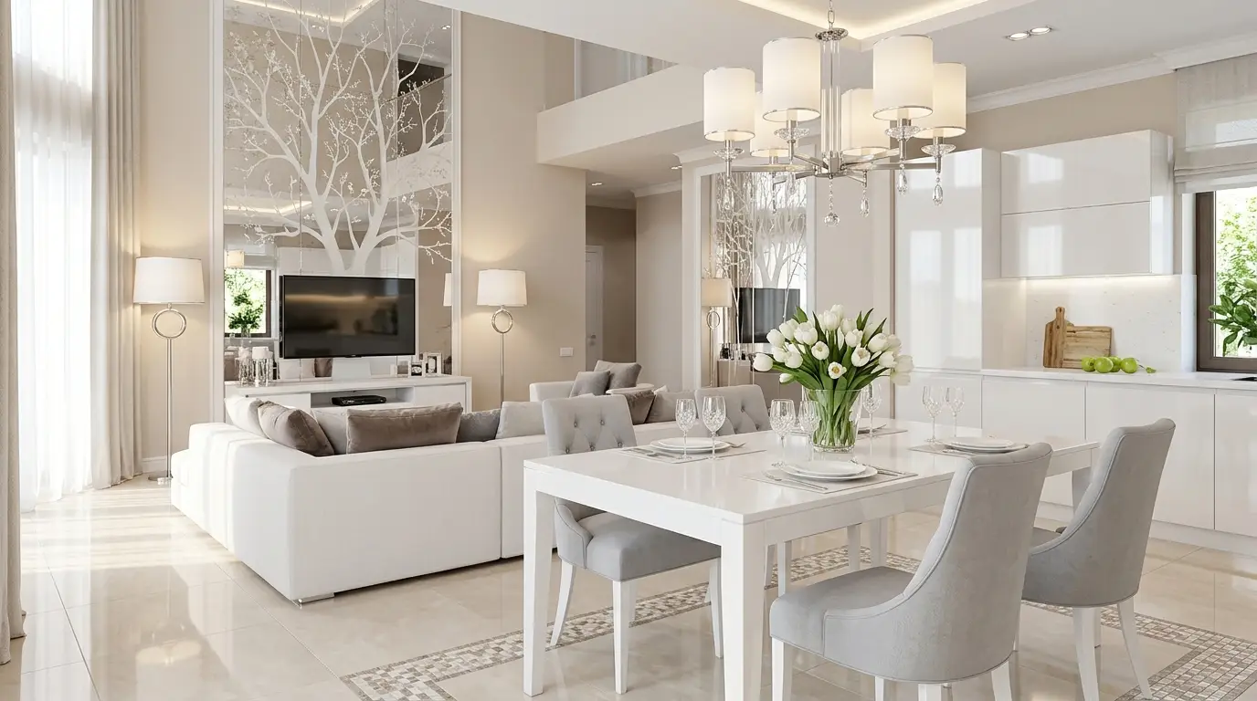 Design etereo per soggiorno e sala da pranzo in bianco (2026)