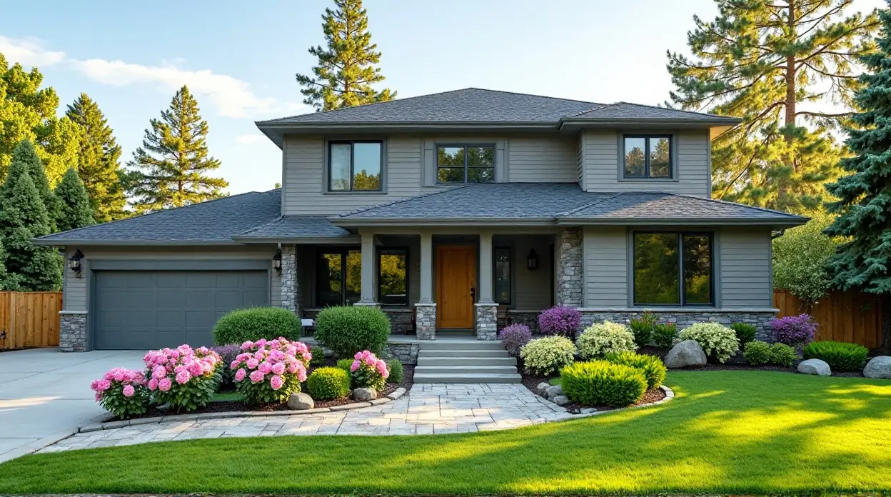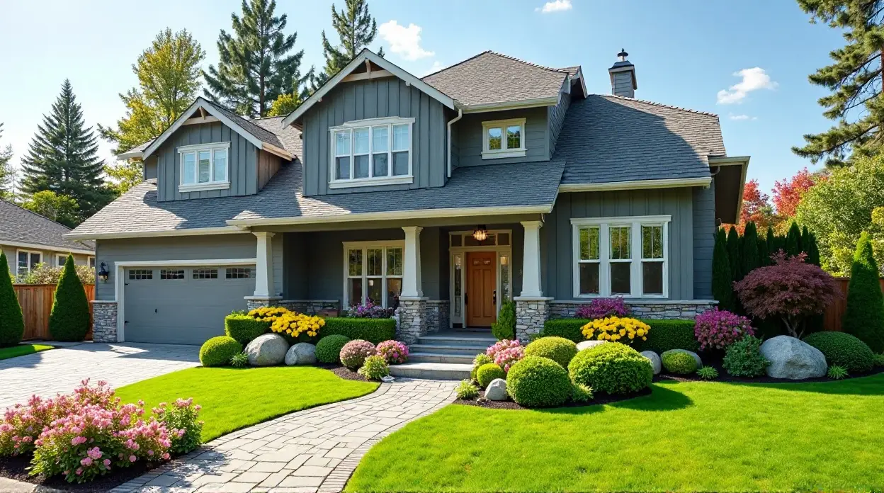 “Armonia nel design: il rivestimento grigio incontra un lussureggiante giardino” illustra la perfetta integrazione tra eleganti scelte architettoniche e un paesaggio vivace. Selezionando con cura il rivestimento grigio e coltivando un giardino vario e armonioso, i proprietari di casa possono creare un ambiente esterno accogliente e tranquillo che valorizza sia l’esterno della propria abitazione sia la qualità della vita quotidiana. Questo approccio non solo eleva il pregio estetico delle singole case, ma contribuisce anche al fascino e al carattere complessivo del quartiere.