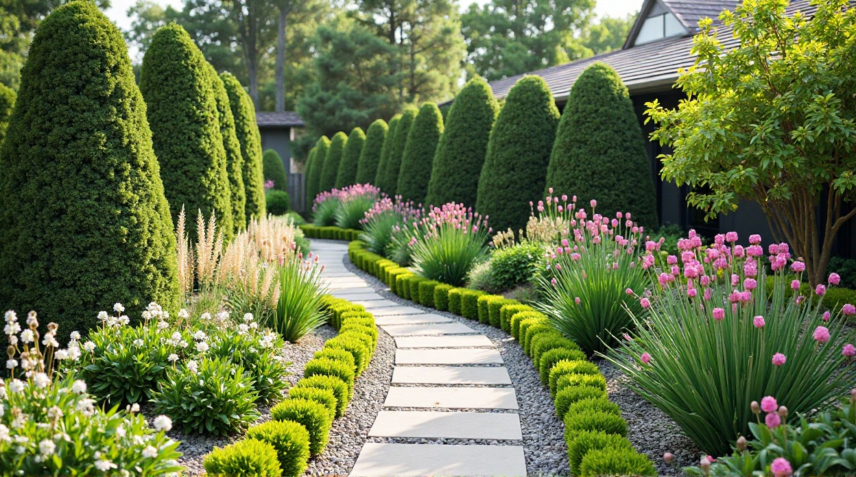 - Atrativo durante todo o ano: Incorpore plantas perenes ou gramíneas ornamentais que proporcionem estrutura e cor mesmo quando as plantas com flores estiverem dormentes.