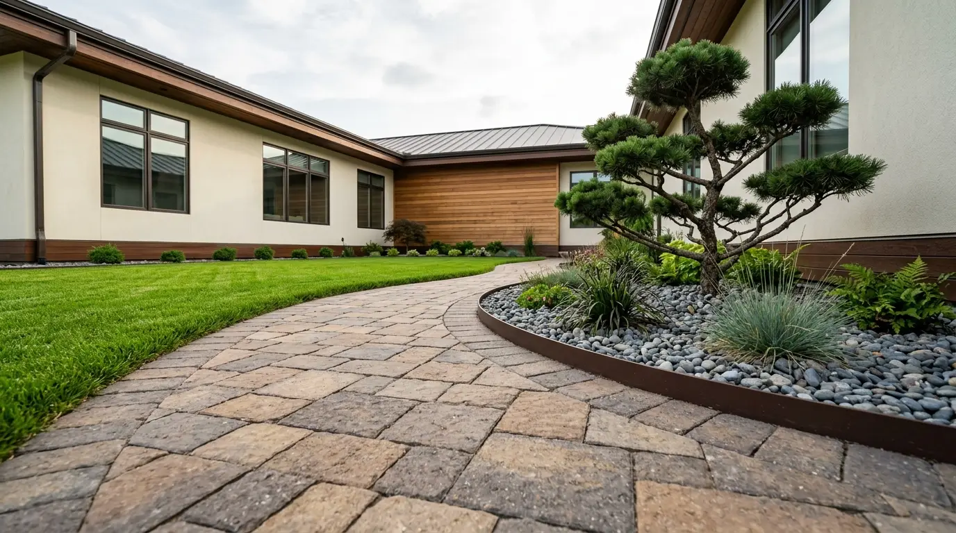 Слишком долго узкие границы жилых участков вдоль наших домов игнорировались, превращаясь в мертвые зоны или заросшие складские помещения. Сегодня современный ландшафтный дизайн возвращает эти заброшенные коридоры, превращая их в плавные, непрерывные ландшафтные маршруты, соединяющие переднюю и заднюю части участка. Эта востребованная эстетика — идеально подстриженный ярко-зеленый газон в сочетании с динамичными, извилистыми дорожками из брусчатки — решает проблему неиспользуемых боковых зон, одновременно повышая стоимость недвижимости. На примере светло-кремового дома с темно-коричневыми акцентами, контрастирующего с поразительной структурной элегантностью стилизованного дерева ниваки и серым каменным покрытием, эта галерея предоставит вам идеальный план для захватывающего преображения бокового двора.