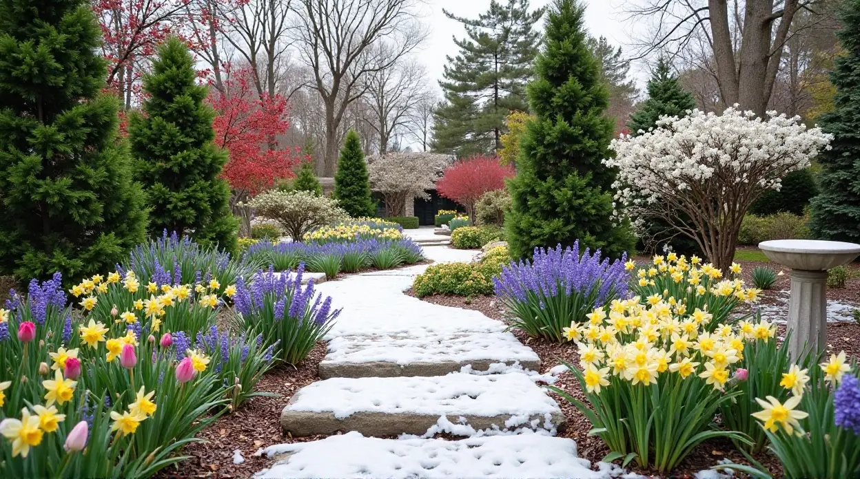- Квітучі дерева та чагарники: додайте квітучі сорти, такі як кизил, квіти вишні та бузок, для чарівного цвітіння, яке сповіщає про прихід весни.